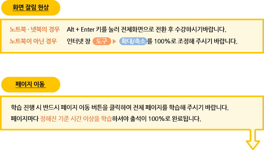 - 응시방법 : 범용 공인인증서 로그인 → 마이페이지 → 과정명 → 기말평가참여 → 응시